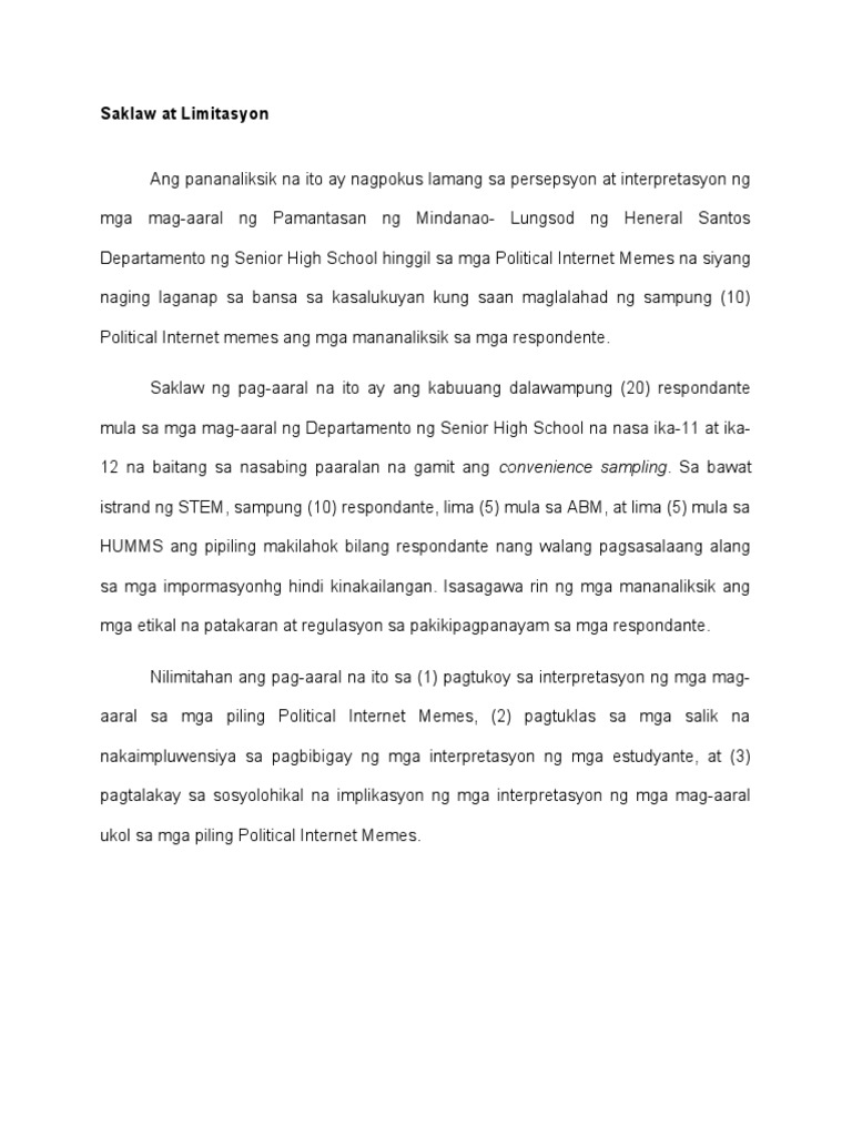 Saklaw At Limitasyon Pag Aaral Halimbawa