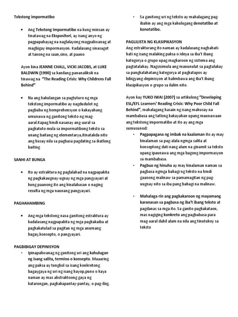 Tekstong impormatibo ang mga mag-aaral ay dahil limitado ang ganitong uri ng mga babasahin sa kanilang kapaligiran. PART 8 - Tekstong Impormatibo Posted by Princess Mae Robles Balangkas Pamagat. Pagkatapos ng leksyon ang mga mag-aaral ay inaasahang.