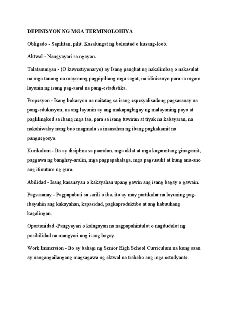 Doc Depinisyon Ng Mga Terminolohiya Ayris Tapel Academia Edu