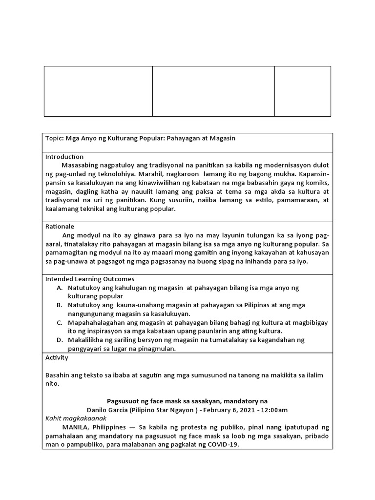 Module 2 Week 3 4 Mga Batayang Kaalaman Sa Pag Aaral Ng Kulturang Popular 2 Pdf
